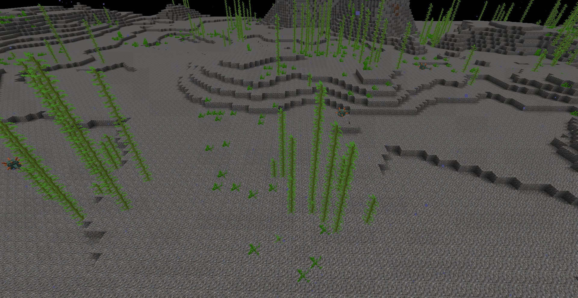- Морская трава: появляется в любых водоемах на поверхности. Может быть высотой в один или два блока, но не растет без костной муки.