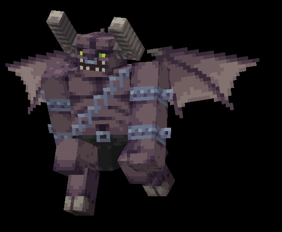 - Лорд Демонов: Огромный инфернальный монстр, который освободился от оков и теперь правит меньшими демонами. Редко встречается, но его можно найти в Нижнем мире. Дропает цепи, железные слитки и обсидиан.