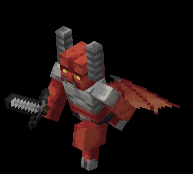 - Демон: Жуткое создание, способное внушить страх своим видом. Обитает в Нижнем мире и обладает иммунитетом к огню и отталкиванию. Возможный дроп — блочные магмы.