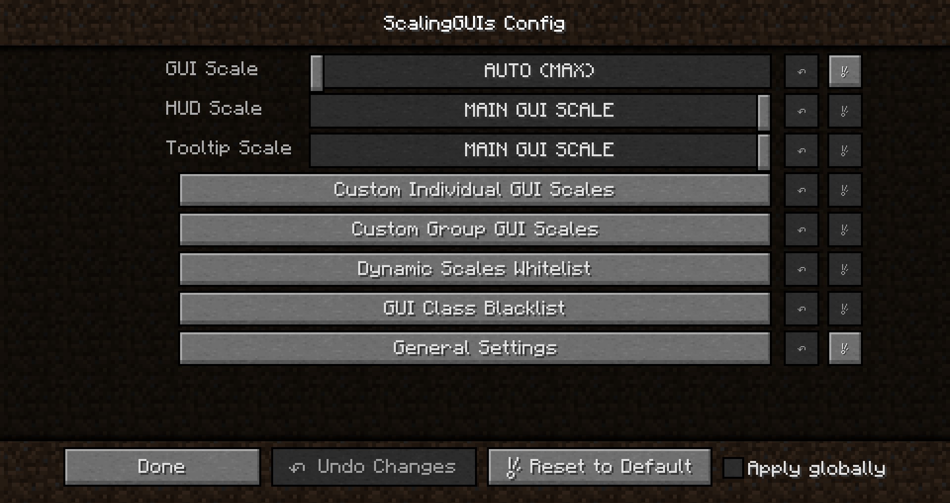 - Черный список классов GUIs: Удобный способ предотвратить изменение масштаба для некоторых интерфейсов, например, для подменю JEI или Tinkers Construct.