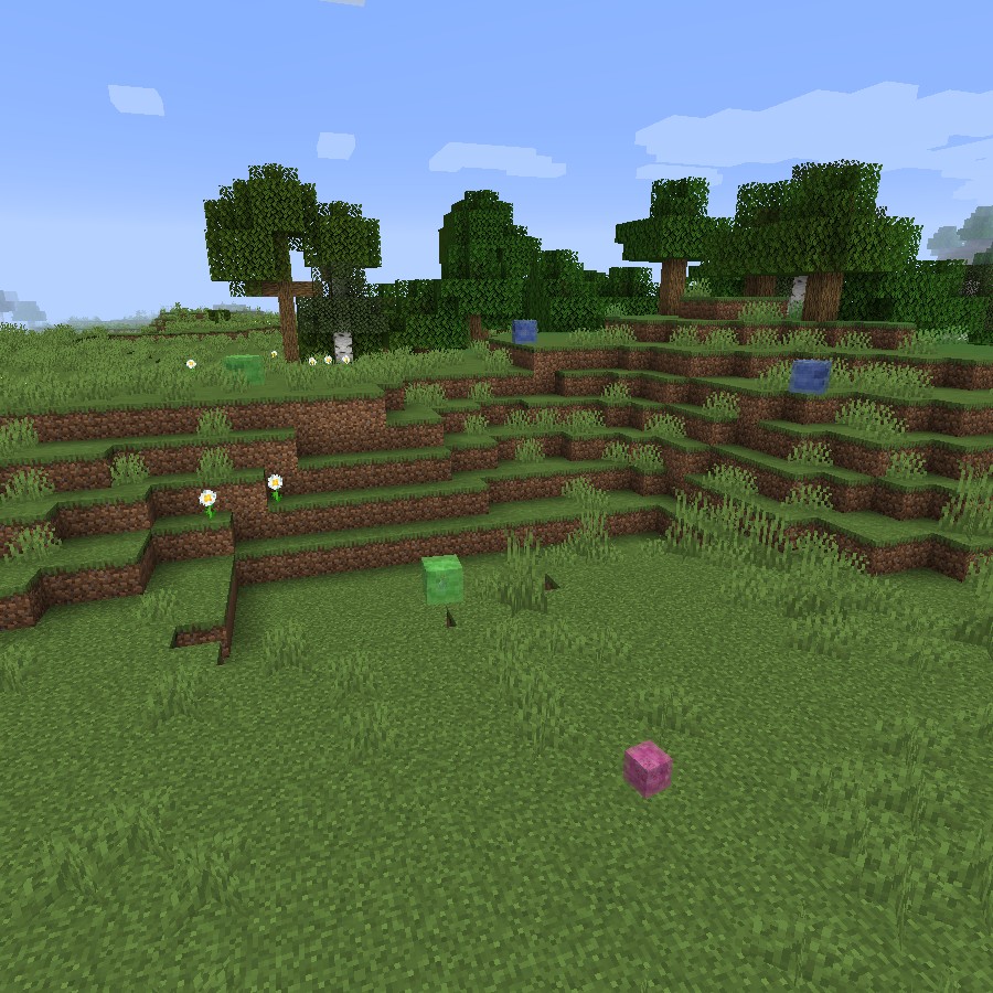 На травяных поверхностях вашего мира вы найдёте таких слизней, как Зелёный, Синий и Розовый. Эти существа легко доступны и обеспечивают игрока необходимыми ресурсами.